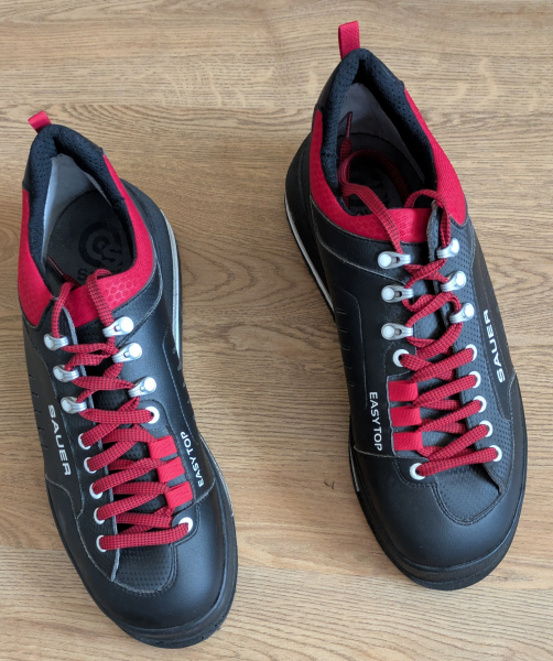 Biete neuwertigen Pistolen Schießschuh Sauer Easy Top. Gr. 46. 1 Jahr alt. Maximal 3-4 x benutzt. Farbe schwarz. Neupreis 220,-€. Absoluter Top Zustand ( siehe Bilder ).