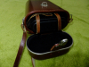 Das Fernglas wird mit einem einfachen Gummi-Okularschutzdeckel geliefert. Der mit Metallösen gegen die Versprödung der üblichen Kunststoffösen das Glas mit einem einfachen Lederriemen trägt und montiert in den orig. Köcher passt.
