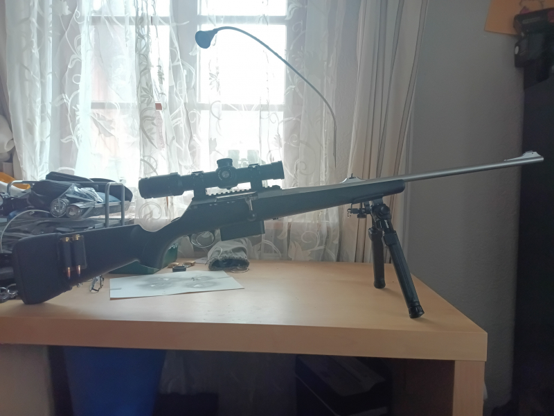 Mauser M 96 S stainless Geradezugrepetierer im cal 7 mm Remington Magnum. Dreistellungssicherung, pica Schiene Lauflänge 61 cm Kunnstoffschaft. Seltene stainless Magnumausführung. Eingeschossen auf bleifrei Barnes ttsx . Glas Discovery optic 1-8 x28 mit 34 mm Mittelrohr einstellbarer parallaxe und beleuchtetem Absehen. Wasserwaage Türme nullbar. Restmunition vorhanden verbleit und bleifrei Preis Verhandlungssache . 2 und 4 Schuss Magazin dabei.Gebrauchsspuren betreffen hauptsächlich den Schaft Kratzer vom Waffenschrank und Transport. Lauf und System innen und außen sehr gut.Laut meinem Büchsenmacher wurden von dieser Version nur sehr wenige gebaut und noch weniger in Deutschland verkauft.Verkauf ist Alters und krankheitsbedingt. Preisvorschläge sind möglich. Munition 28 x bleifrei und 81 x verbleit alles Jagdmunition sind inkl.Keine Garantie oder Rücknahme da Verkauf von privat.