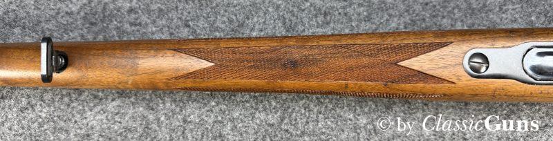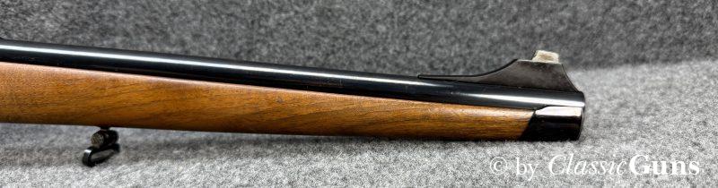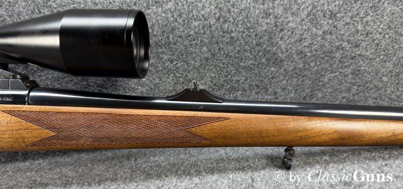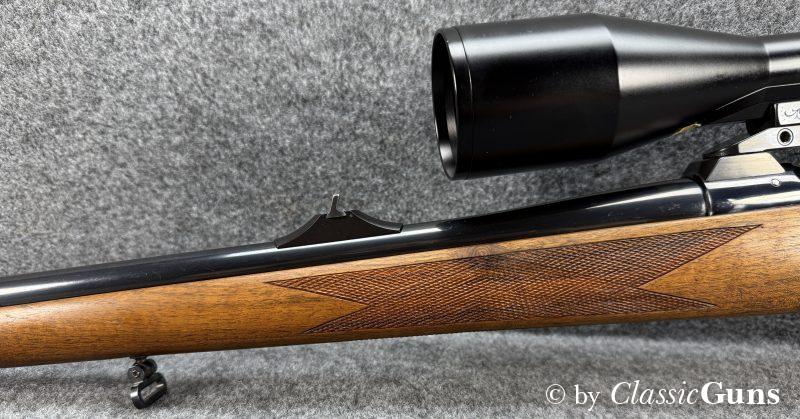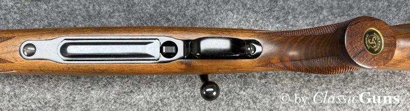 500 mm langer Lauf mit neuwertigem Zug-/ Feldprofil. Sehr schön gemaserte Stutzen-Schäftung mit leichten Spuren des jagdlichen Gebrauchs. Sehr gut erhaltene Brünierung, ebenfalls mit leichten Gebrauchsspuren. Praxistauglicher Direktabzug mit Rückstecher, Stahl-Einsteckmagazin für fünf Patronen.