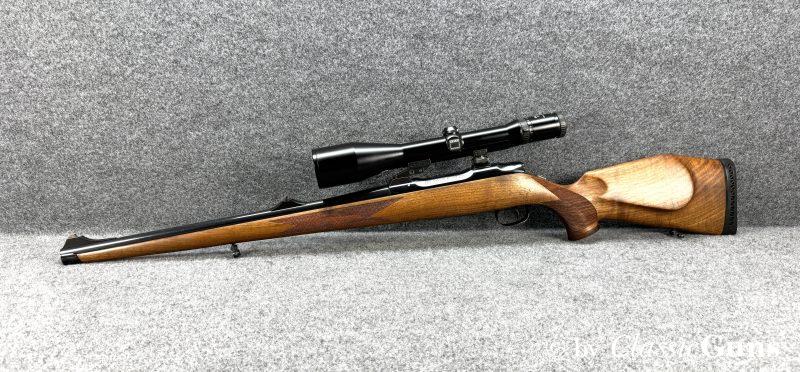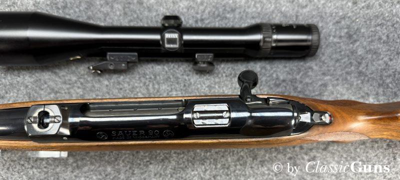 Sehr gut erhaltene und auf Grund des unvergleichbar geschmeidigen Repetiervorgangs unter Kennern sehr gesuchte Repetierbüchse aus erstklassiger Sauer & Sohn Fertigung, in unserer Büchsenmacherwerkstatt sorgfältig gereinigt und geprüft.