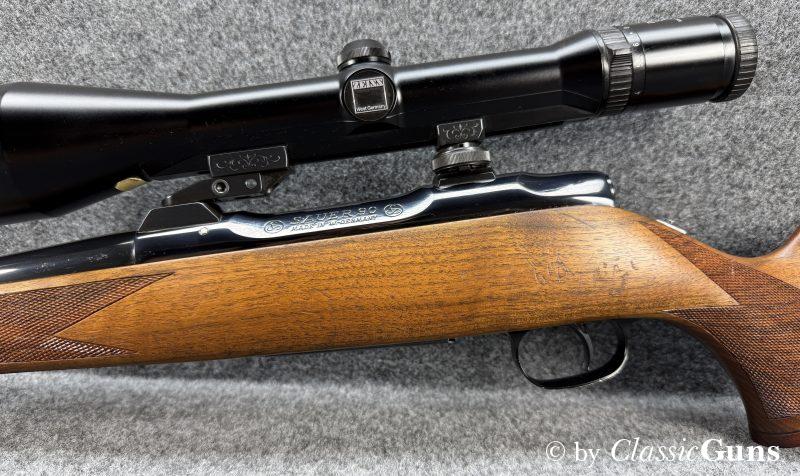 Das mittels Schwenkmontage aufgesetzte Zielfernrohr ZEISS DIAVARI-ZM 3-12X56 T* (Abs. 4) wurde von uns geprüft und ist technisch einwandfrei und schussfest. Das Zielfernrohr sowie die Montage erhalten Sie von uns gratis mit zur Waffe (somit hierauf keine Garantie oder Gewährleistung).