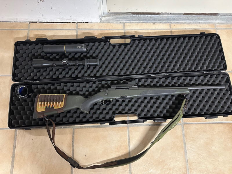 Die Waffe mit Optik und Montage wurde Anfang Juni 2019 gekauft, montiert und eingeschossen. Mit dem Paket übergebe ich alle Kaufbelege, Unterlagen, usw. Die Waffe war 5 Jahre im jagdlichen Einsatz und hat leichte Gebrauchsspuren. Die Waffe und alles