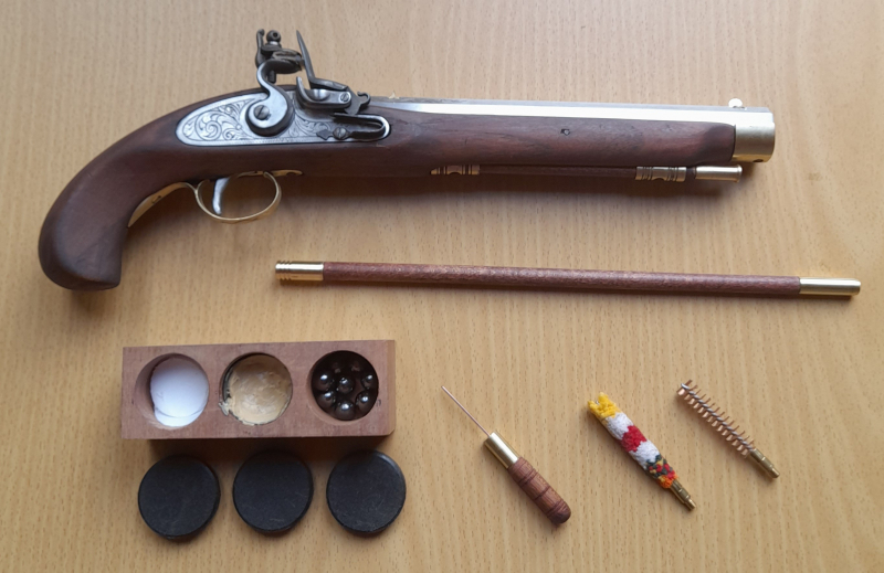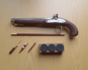 Hallo, ich verkaufe hier eine von Jacobi Iserlohn vertriebene Steinschloss Pistole im Kal. 45 mit einiges an Zubehör. Zu der Pistole gehören die wie auf dem Bild zu sehen der Block mit intrigierten Näpfen samt Inhalt. Reinigungsbürste nebst Wollwischer – beide lassen sich mit dem beigefügten Putz und Ladestock verschrauben. Der Zündloch Reiniger gehören mit zu der Waffe. Die Pistole stammt noch aus den 70iger – 80ziger ist entsprechend sowohl im Ansehen und im Finnisch gefertigt. Der Lauf ist Blank poliert. Die Beschriftung „Black Powder Only“ – “Jacobi Iserlohn“ ist recht Dezent gestaltet – bei den Beschuss Zeichen handelt es sich um Spanische und sind selbstverständlich vorhanden. Die Schlagfeder wurde erneuert. Nur um die Funktion zu testen habe ich ein paar abgefeuert um zu sehen ob eine Funkenbildung gegeben ist – diese sind zwar da könnten aber besser sein – da ich mich mit Steinschlosswaffen nicht so auskenne kann ich nicht sagen ob es am Feuerstein liegt oder der Batterie – oder eine noch stärkere Feder verbaut werden muss – der Hahn rastet zwei Mal sauber ein – obwohl sie eine bewegte Geschichte hinter sich hat selbst geschossen habe ich mit ihr nie. Sie kaufen das was sie sehen. Bitte sich die Bilder ansehen, auf Wunsch kann ich aber noch welche zusenden. Und zum Schluss noch das Übliche dies ist ein Privatverkauf daher Garantie - Rückgabe - Umtausch und der gleichen Ausgeschlossen.---------------------------PS: Auf Nachfragen - Der Lauf hat natürlich ein Zug und Feldprofil - Blank poliert bezieht sich auf Außen.