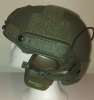 Sie kaufen hier einen kugelsicheren Gefechtshelm mit elektronischen Gehörschutz in Oliv.
