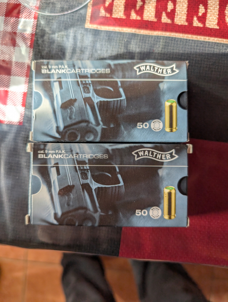 Verkaufe hier 100 Platzpatronen kal 9mm Pak von Walther . Siehe Bild