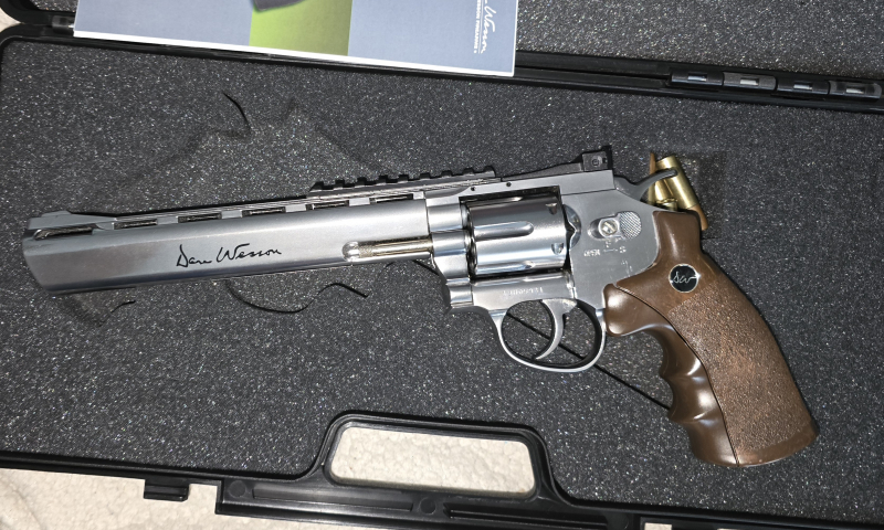 Hallo, biete hier von Dan Wesson den Revolver in 8" in chrom CO2 in 4,5mm BB an. Waffe ist aus metall und hat kein blowback.