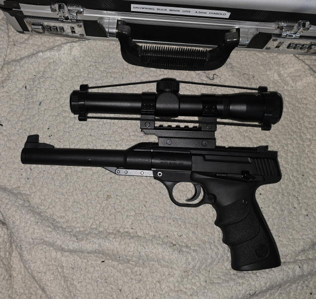 Hallo, biete hier von Browning die Buck Mark URX in schwarz knicklauf in 4,5mm Diabolo an. Waffe ist aus Kunststoff/metall und hat kein blowback.