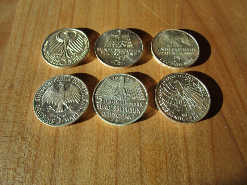 6 Stück verschiedene 5 DM Gedenkmünzen, Silber. Privatverkauf.
