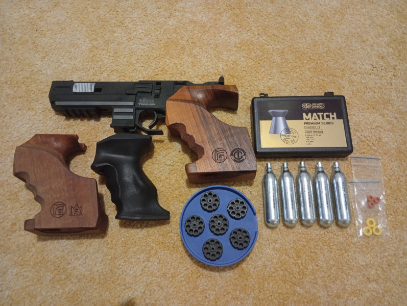 Ich verkaufe hier aus meiner Sammlung einen Röhm Twinmaster Trainer. Die Pistole ist vom Zustand wie neu, ich habe die Pistole vor ca. 10 Jahren bei Gottlob und Brucklacher neu gekauft. Der Trainer hat ca 100 Schuss weg ist also wie neu, es gibt an der Waffe absolut keinen Makel. Zum Zubehör gehören alle 3 Griffe die es für die Twinmaster Pistolen gab(2x Schichtholz und 1x Gummi), den originalen Röhm Speedy Speedloader, 7 originale Röhm Magazine, 6 originale Röhm Ersatzdichtungen, Handverlesene Match Diabolos und 5 CO2 Kapseln von Umarex so das der Spaß gleich losgehen kann. Die 22mm Schiene die an der Waffe angebracht ist, ist original Röhm und Stammt vom Röhm Twinmaster TCR Gewehr. Ansonsten gibt es zu der Waffe nicht mehr viel zu sagen, eine Tolle Pistole absolut Präzise und im perfekten Zustand.