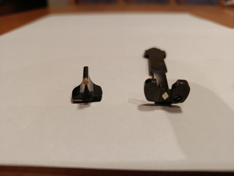Sie bieten auf eine Buckhornkimme und ein Messing Perlkorn das auf meiner Marlin 1894 Cowboy mit Achtkantlauf im Kaliber .44 montiert war