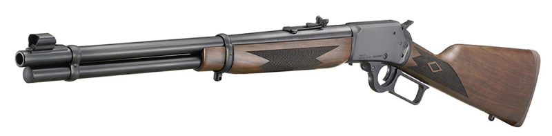 Komplett brüniert und mit einem quadratischen Unterhebel versehen, ist dieses Gewehr aus legiertem Stahl mit einem kaltgehämmerten Lauf