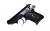 Schwarze Kunststoffgriffschalen mit Fischhaut und Walther-Schleife.