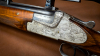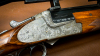 Die Basküle verfügt über lange Seitenplatten: rechts mit feiner Jagdhund- & Enten-Gravur, links mit Rehwild; der restliche Baskülenbereich ist mit Eichenlaubgravur und dekorativen Arabesken verziert. Beide Läufe sind innen spiegelblank. Der Verschluss schließt dicht, der Rückstecher ist im vorderen Abzug angeordnet.