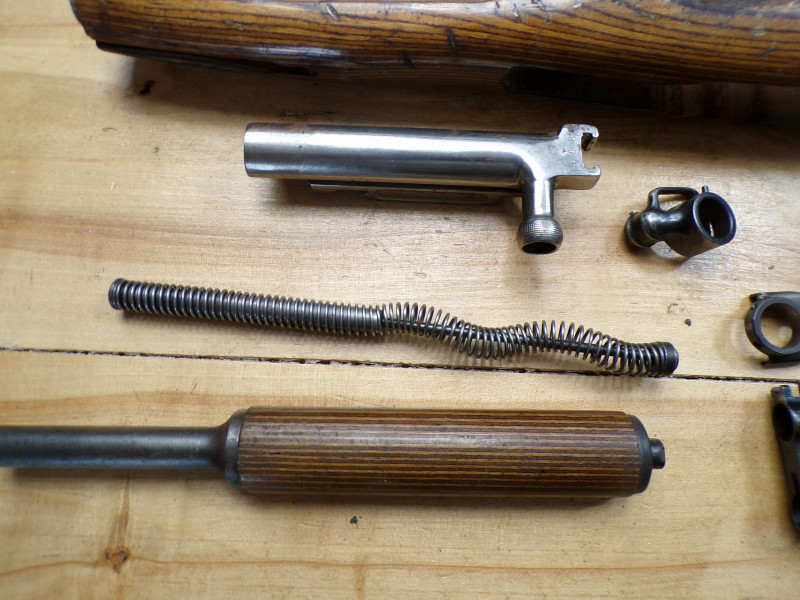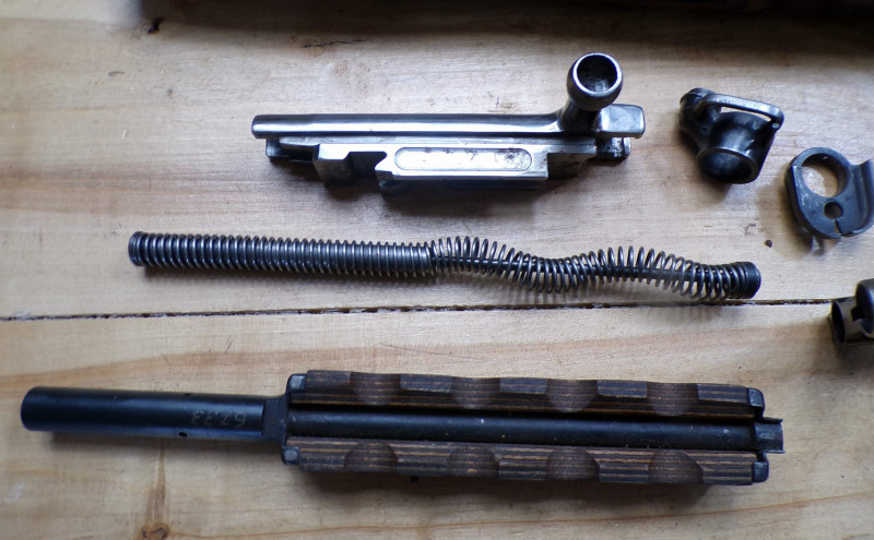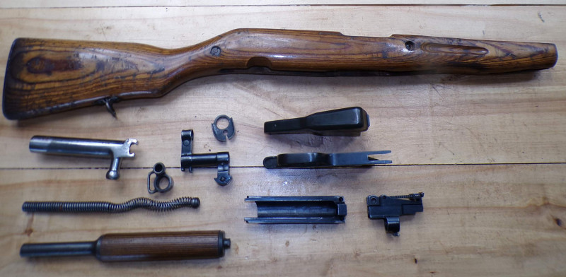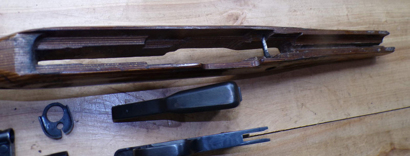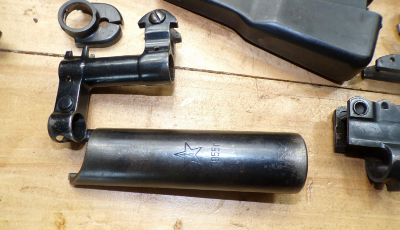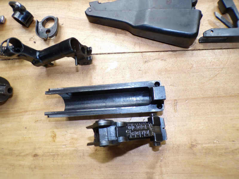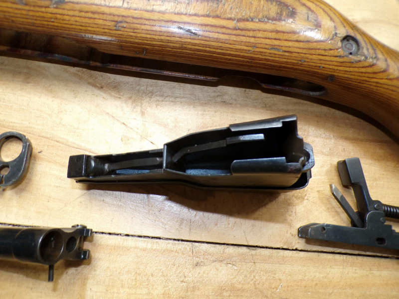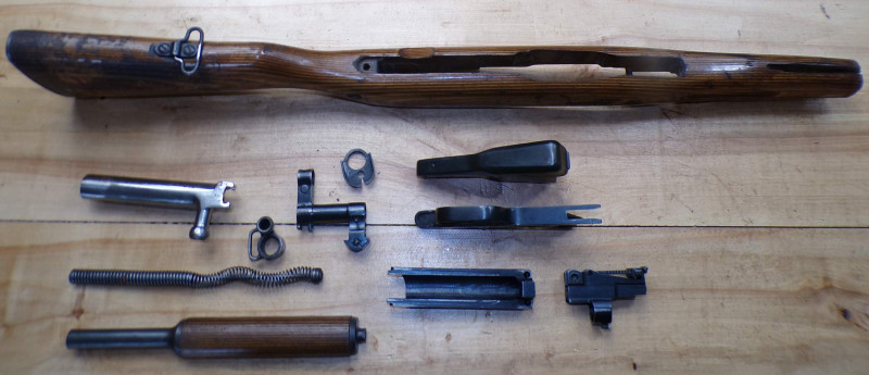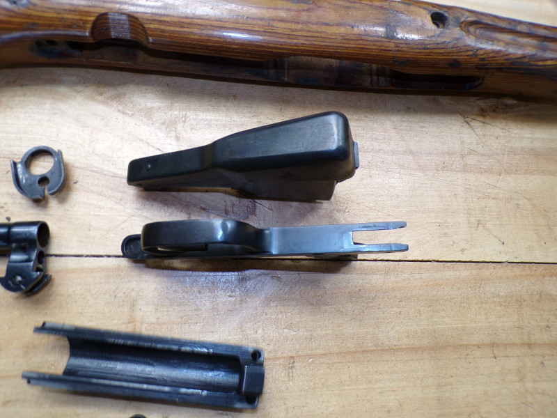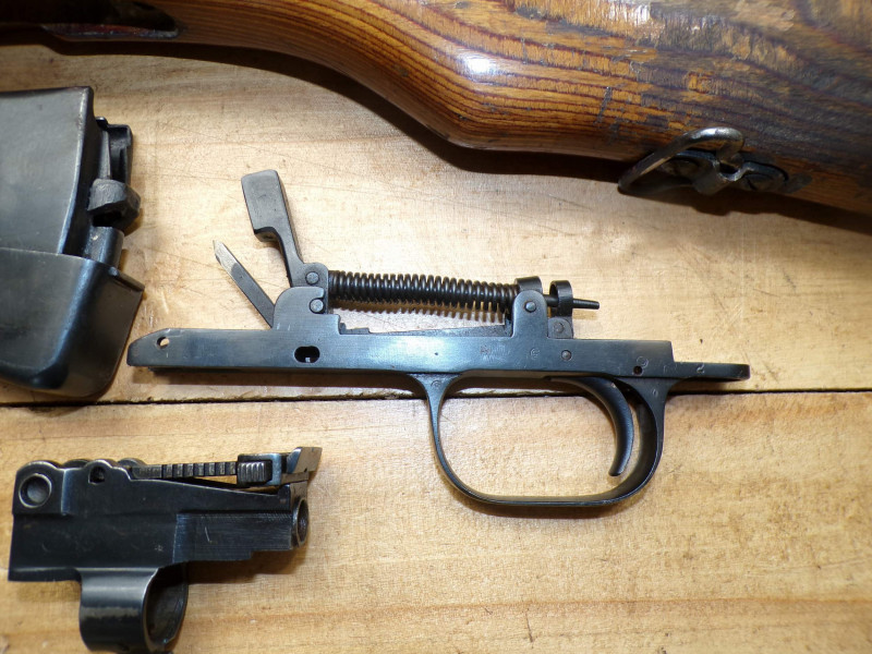 Teilesatz von Halbautomatische Gewehr SKS45 Simonov kal 7,62x39. Alle Teile sind gebrauchte, Magazinkaste ist ohne Zubringer, Abzugsgruppe funktioniert nicht. Rest in ordung.