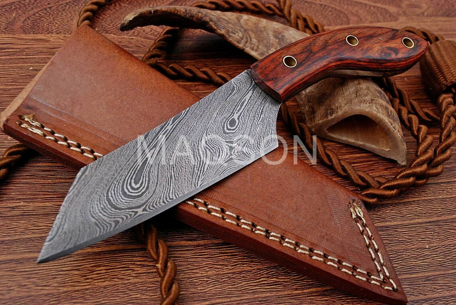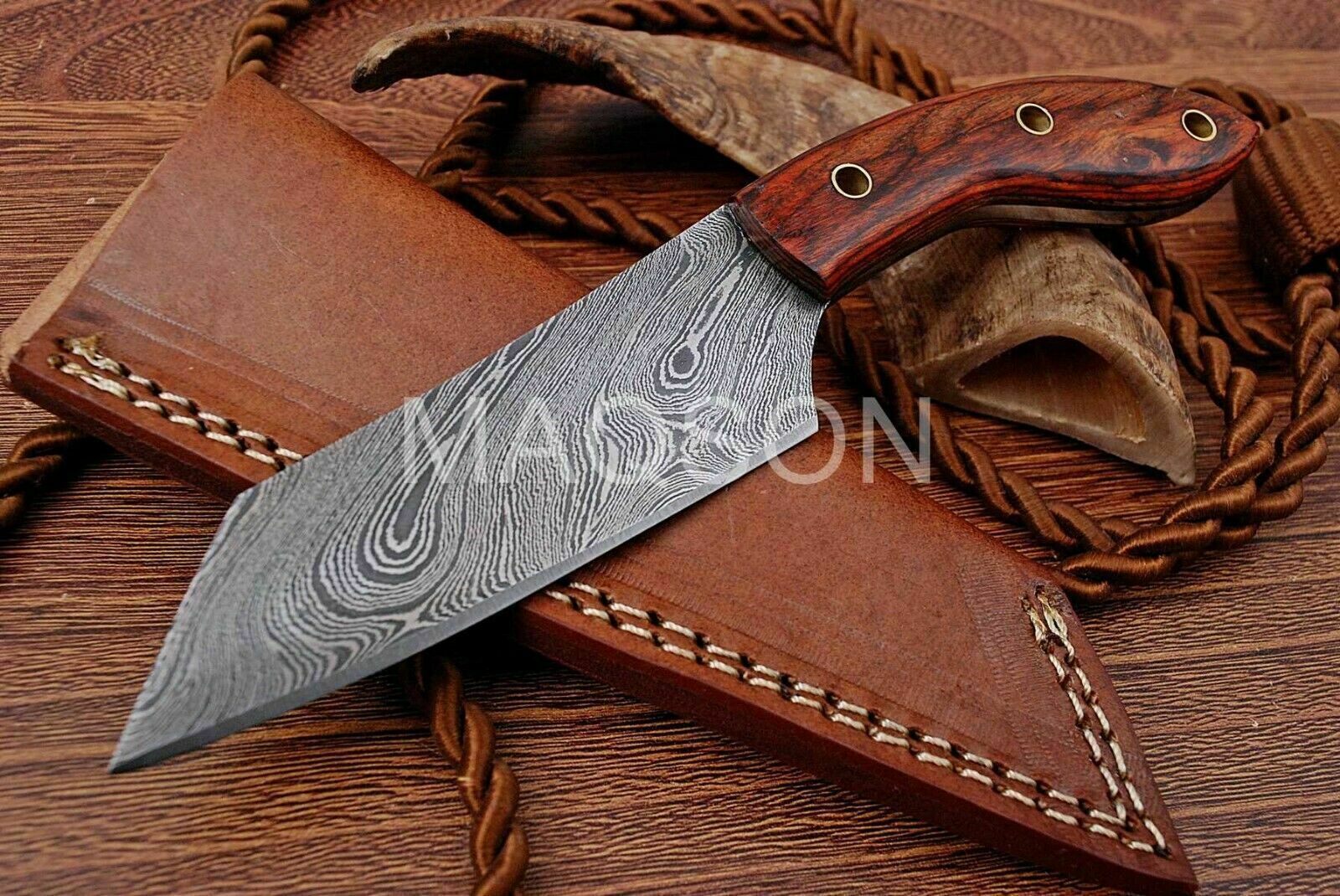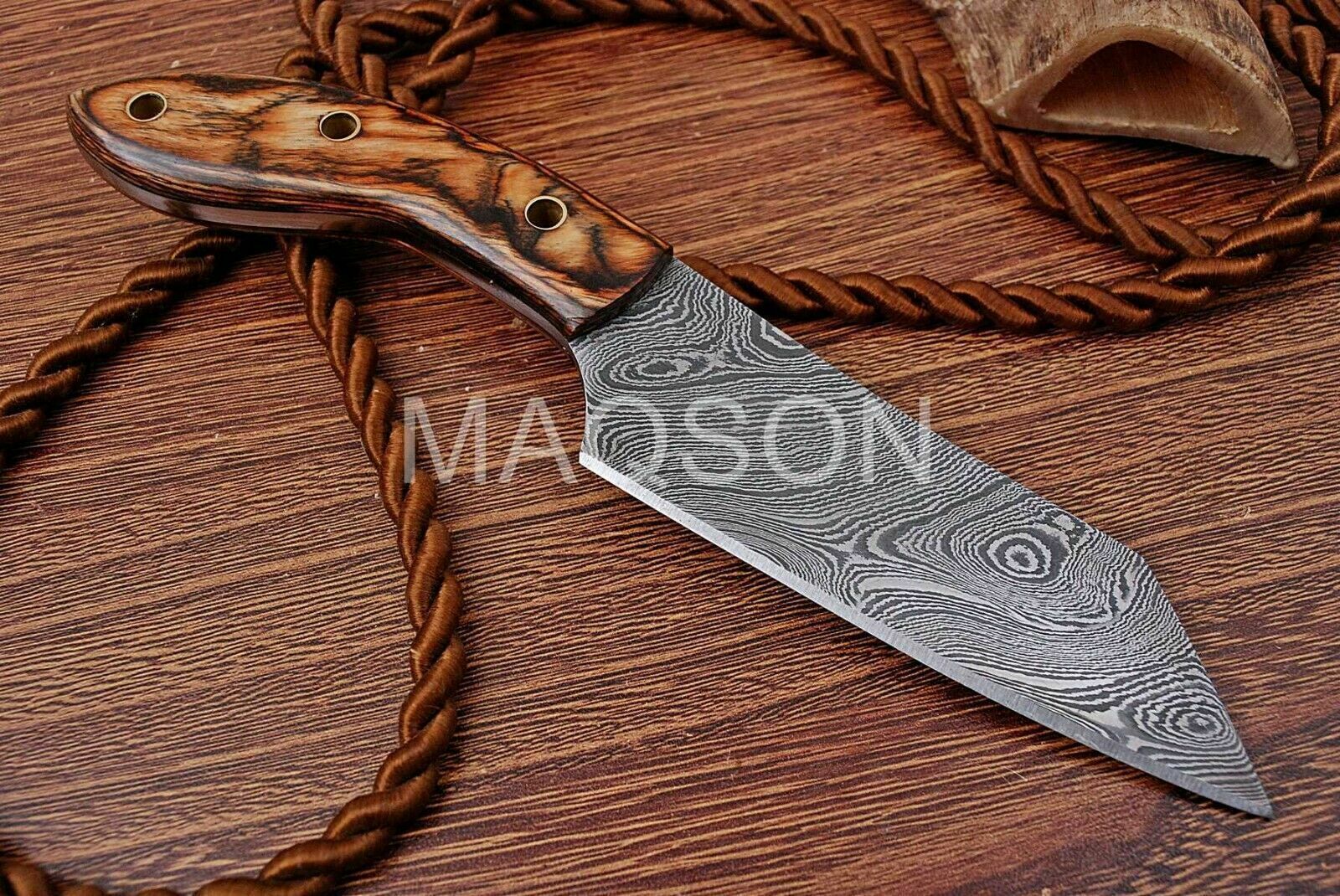 Damast Messer, sehr schönes Hand geschmiedetes Damast Jagd Messer MAQ1961