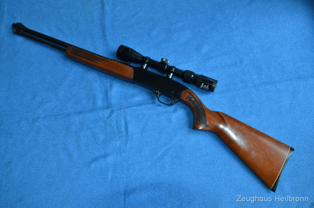 Vorderschafts-Repetierbüchse, Waffe in einem schönen Zustand, volle Funktion, Lauf blank. Mit ZF