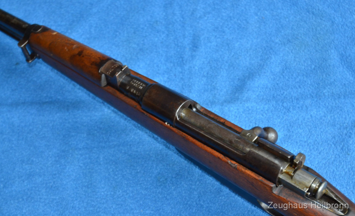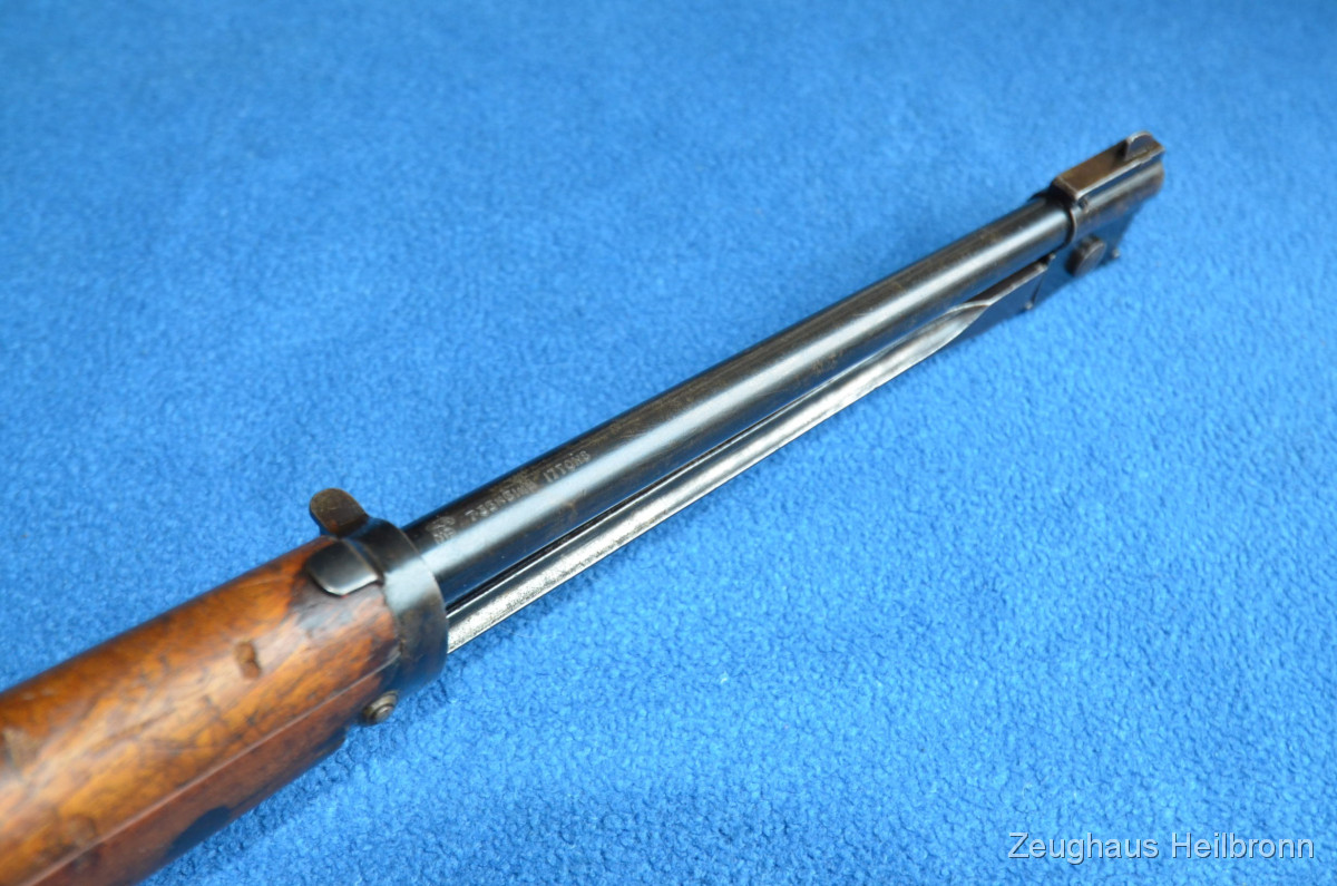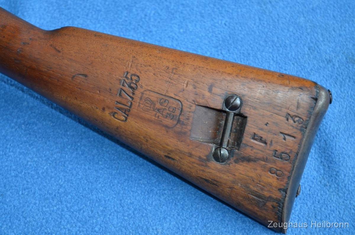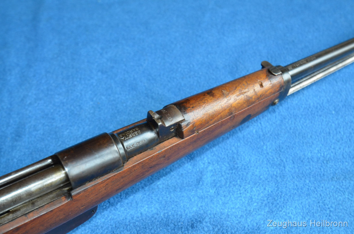 Waffe in einem guten Zustand, siehe Bilder, Lauf blank, volle mechanische Funktion. Selten, da die Produktion schon 1940 wieder auf die alte 6,5 Carc. umgestellt wurde.