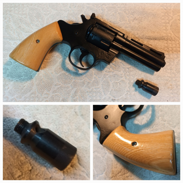 Hallo ihr lieben. Die Waffe wurde Grund gereinigt und geölt, da sie lange im Schrank gelegen ist. Es ist eine Umarex Mod. PYTHON Cal:380K / 9mm Schreckschuss - Signal / Knall Revolver + Abschuss Becher *** PTB 282-2 ***. Wahnsinns schöner Holzgriff. Brünierung sieht schön aus, ich denke aber nicht mehr Original. Waffe wurde bereits nach all den Jahren Überarbeitet. Funktion ist tadellos gegeben. Der Abschuss Becher ist im Lieferumfang enthalten. Mir ist Aufgefallen, das der Spannhebel gekürzt oder kürzer ist. Ändert aber nichts an der Funktion. Schöne Waffe zum Fairen Preis.