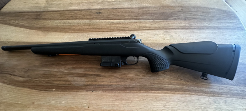 Verkaufe hier meine Tikka T3 CTR stainless Ausführung Kaliber .308 mit 42cm Lauflänge. Die Waffe wurde von Roedale gekürzt und getunt. Der Abzug wurde überarbeitet und bricht bei ca 700Gramm, zusätzlich wurde eine ASH-3 Stellungssicherung verbaut.Lauf und System sind Cerakote beschichtet. Auf dem 42cm kaltgehämmerten Matchlauf befindet sich ein Gewinde (M18x1) für die Montage von Schalldämpfer oder Mündungsbremse. Standardmäßig ist eine Picatinny Schiene und ein 10-Schuss Stahlmagazin verbaut. Die Waffe schießt Streukreise von 15mm auf 100m ohne Probleme. Die Waffe wurde von mir jagdlich genutzt, daher gibt es leichte Gebrauchsspuren. Am Lauf sind ein paar Abriebsspuren der Beschichtung zu erkennen. Bei Fragen gerne melden. Abholung wäre mir am liebsten.