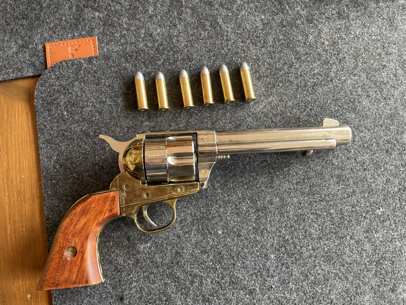 Verkaufe Dekorevolver der Firma Kolser ( Peacemaker ) mit 6 Dekopatronen die auch geladen werden können.