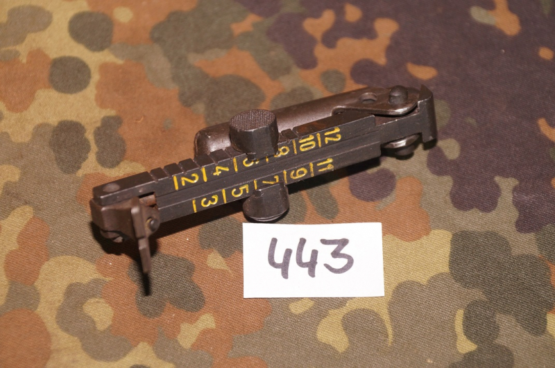 Achtung aufgepasst: original MG1 / MG3 Schiebevisier (auch passend für MG42 / MG53). Zustand, siehe Foto. Es handelt sich bei allen von uns angebotenen Ersatzteilen um FREI VERKÄUFLICHE TEILE. Sie erhalten exakt das abgebildete Ersatzteil. Alle Angaben nach bestem Wissen und Gewissen. Bitte beachten Sie auch unsere weiteren Auktionen. Viel Spass beim Bieten. Versand ausserhalb Deutschlands 22 Euro.