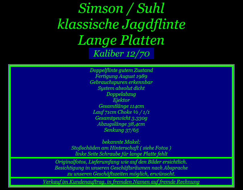 Artikel-ID: 20117606  •  ArtikelNr. des Verkäufers: 11936  •  Kategorie: Jagdwaffen > Flinten > Querflinten