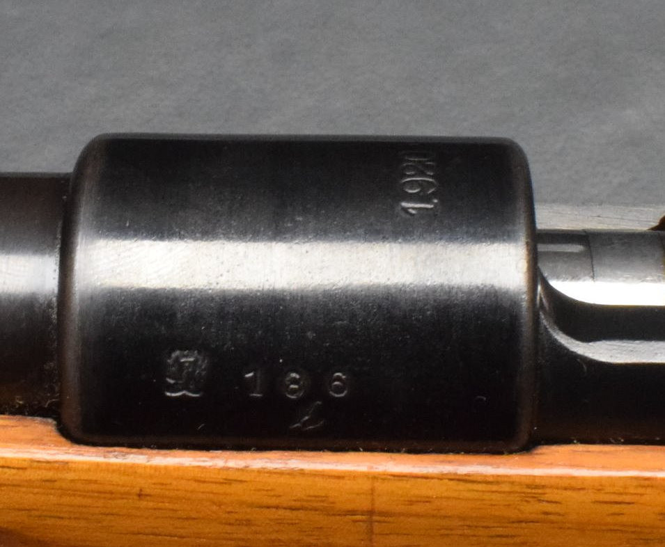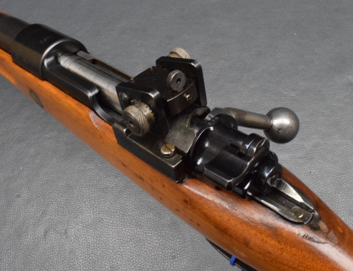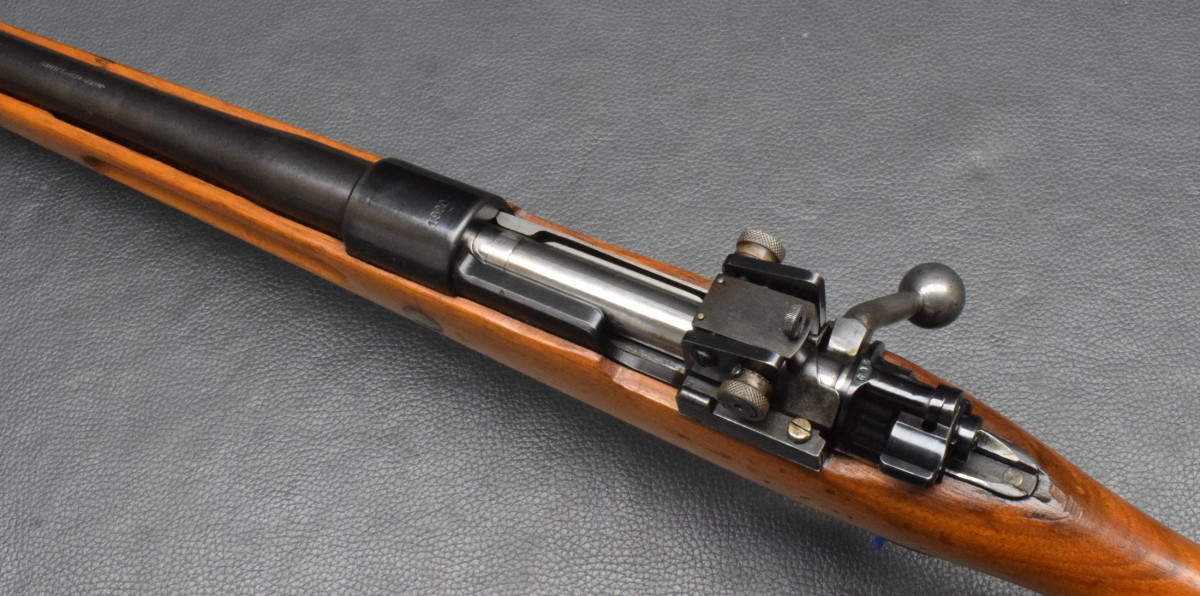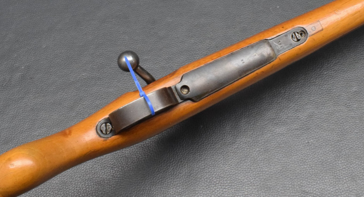 Flügelsicherung am Verschluss, Direktabzug. Nußbaumschaft ohne Backe, Stahlschaftkappe und Riemenbügeln.
