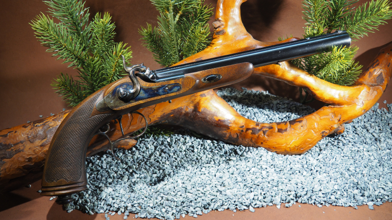 Die italienischen Nachbauten von Armi-Sport sind von hervoragender Qualität und schießen sehr genau. Wie die Originalwaffen hat auch dieser Nachbau eine bunt gehärtete Schloßplatte, einen Schaft mit handgeschnittener Fischhaut und keinen Ladestock.