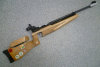 Schichtholzschaft in sehr guter Erhaltung mit nur geringen Gebrauchsspuren und ein paar Aufkleberchen.