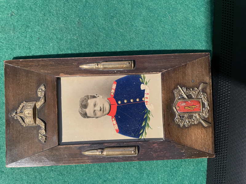 altes Foto von 1906 farbig kolloriert von einen Soldaten Artillerieregiment Nr. 4 schöner verzierter Rahmen