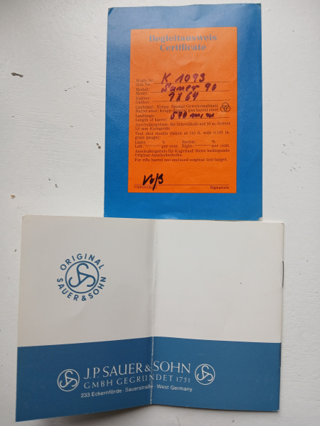 Sauer 90, Kaliber 7 x 64 mit Original Zertifikat, Zeiss Zielfernrohr 8 x 56 Diatal-ZA T-Vergütung Absehen 4 mit Schwenkmontage,