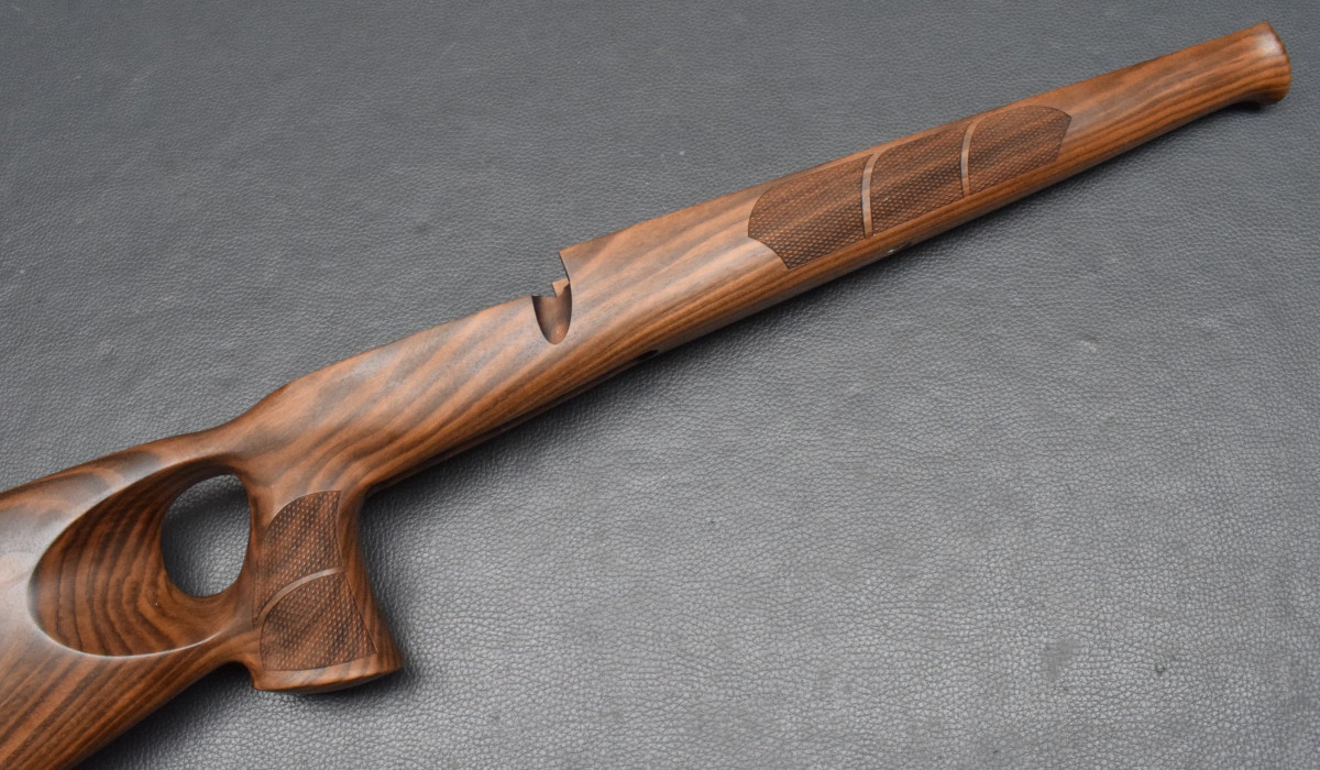 Am Pistolengriff und Vorderschaft mit griffiger Fischhaut.