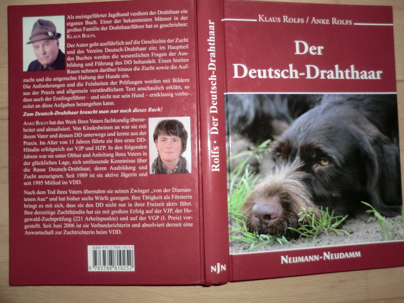 DER DEUTSCH-DRAHTHAAR - Pflege, Ausbildung, Zucht - von Klaus und Anke Rolfs - Verlag Neumann-Neudamm, dritte Auflage 2008 - 220 Seiten aus hochwertigem Papier mit sehr vielen farbigen Abbildungen - Inhalt u.a.: Historisches über den Deutsch-Drahthaar und den Verein Deutsch-Drahthaar e.V. / DD-Zucht / Vom Welpen zum Jagdgebrauchsshund / Das Prüfungswesen / und vieles andere mehr, sehr viele Unterkapitel - Guter bis sehr guter Zustand