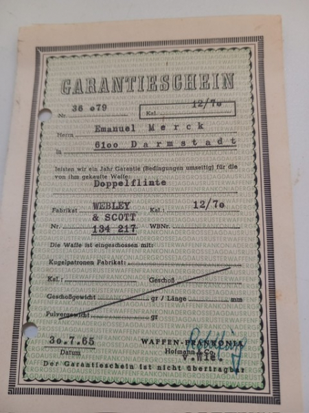 Biete zum Verkauf an : englische Querflinte Webley Scott cal. 12/70