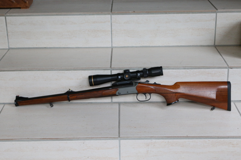 Zum Verkauf steht eine Kipplaufbüchse Hänel Jäger 9, die von einem Büchsenmacher zum Stutzen umgebaut wurde.