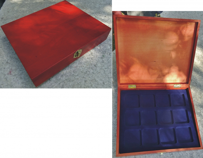 Mit Einsatz für 12 Münzen/Medaillen/Orden. 24,5 X 21,5 X 4,5 cm. Durch Ihr Gebot erkennen Sie an, dass es sich um eine Privatauktion ohne Rücknahme handelt. Haftung für Verlust bzw. Beschädigung der Sendung, die über das Maß der Haftung des Zustelldienstleisters hinausgehen, übernehme ich nicht. Zahlung innerhalb von 1 Woche. Versand 7,-€ versichert, nicht verhandelbar. Paypal NUR auf ANFRAGE!! Viel Glück beim Bieten!
