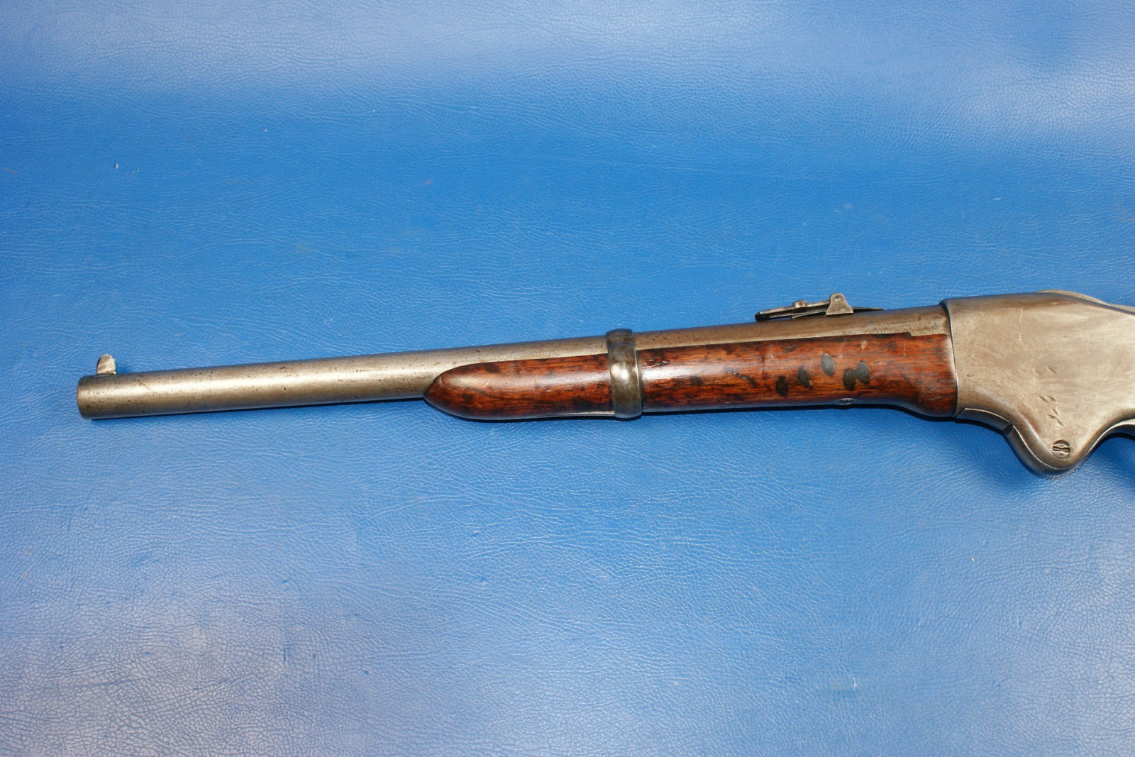 Lager- und Gebrauchsspuren. Lauf wurde gekurzt - Korn ist vom Kunden selbst gemacht wurden. Spencer hat 1860-1874 gefertigt und benötigt somit kein Beschuss.