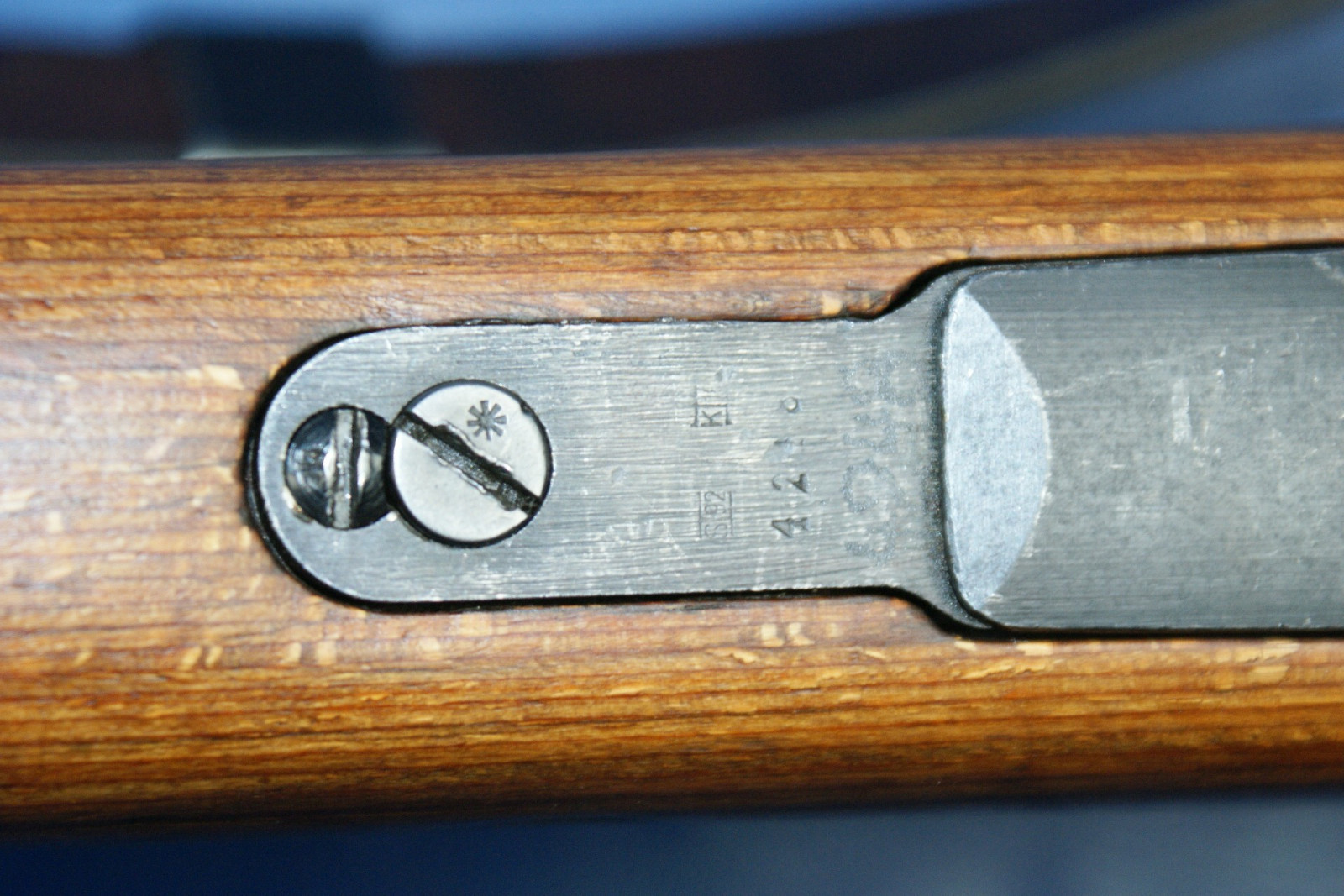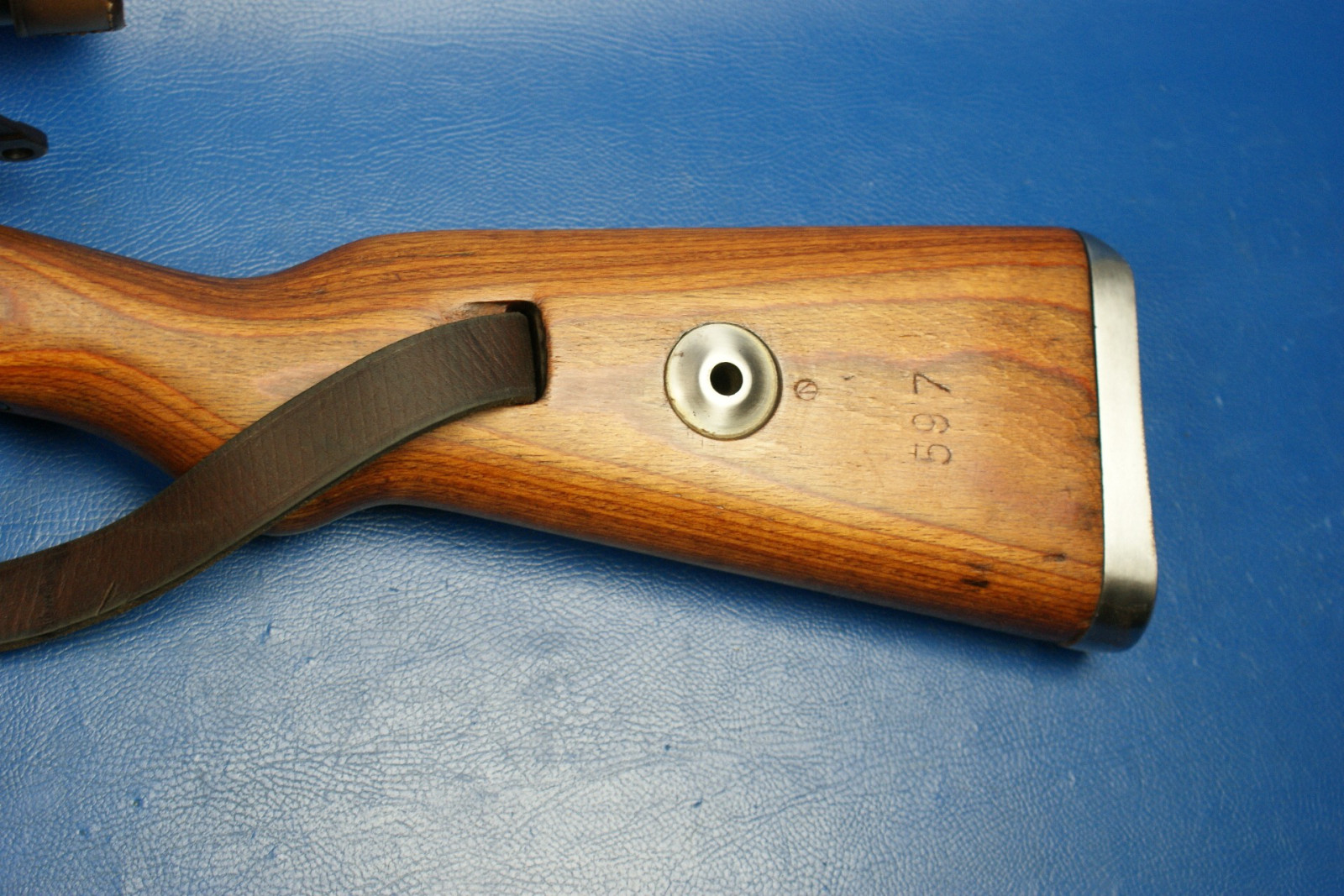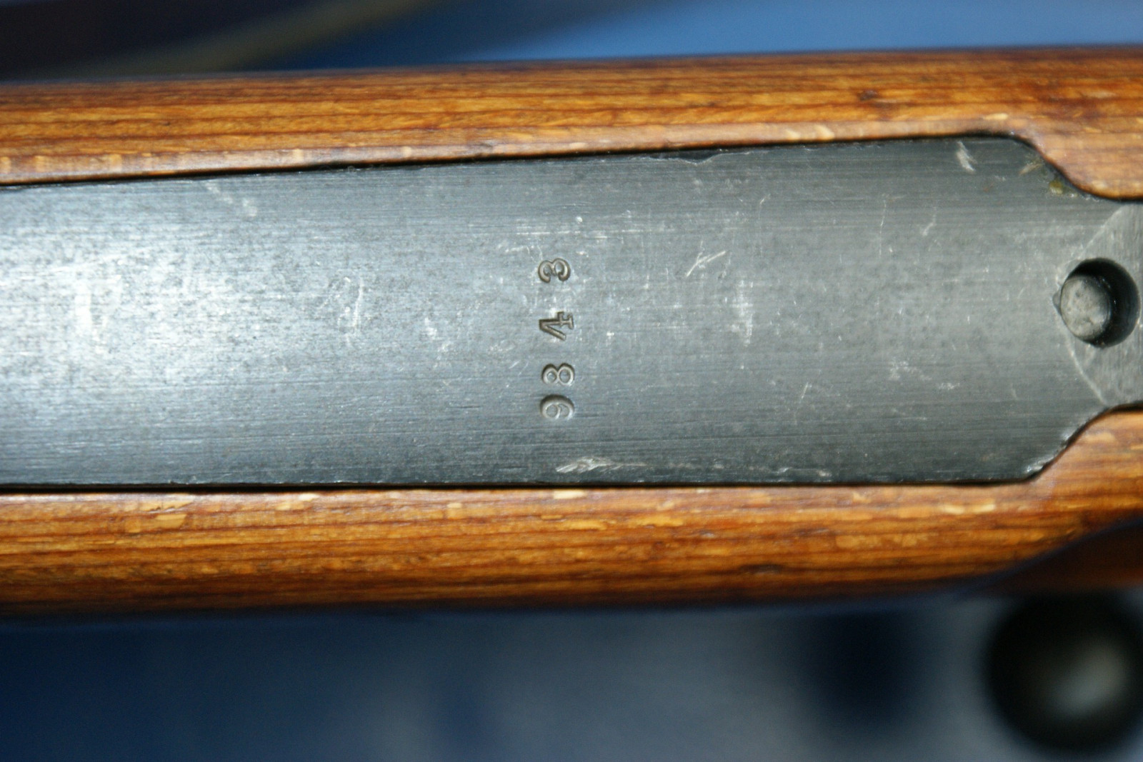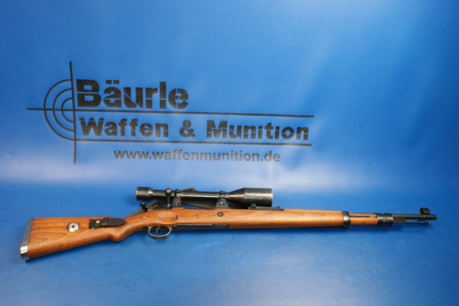 Turmmontage, Lauf und Systemhülse nummerngleich, Rest soweit ersichtlich nicht nummerngleich; Gewehr wurde überarbeitet. Lager- und Gebrauchsspuren.