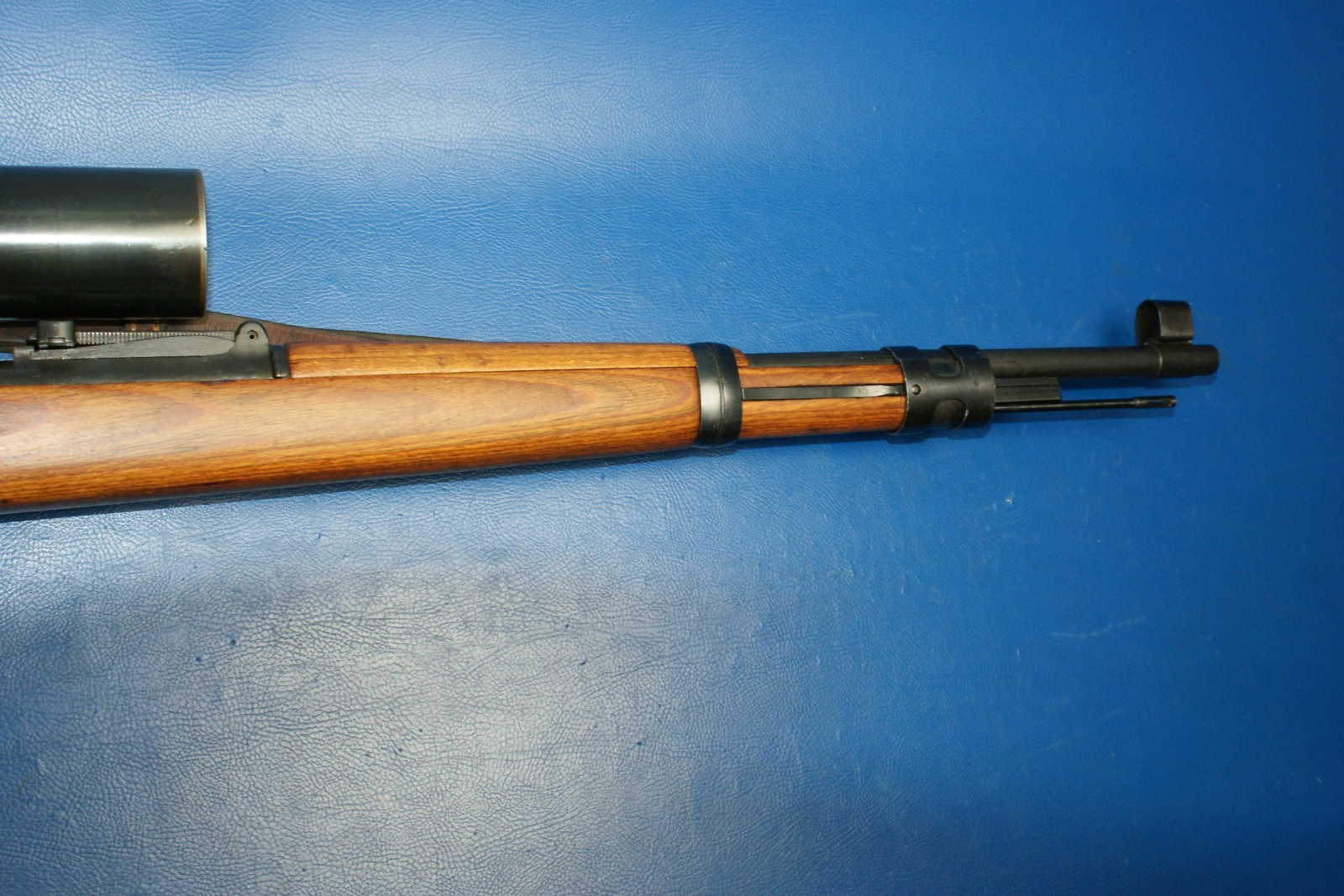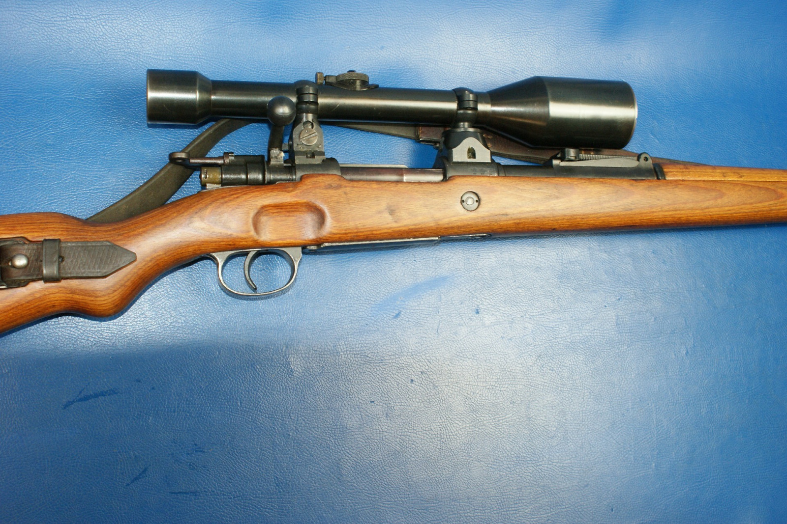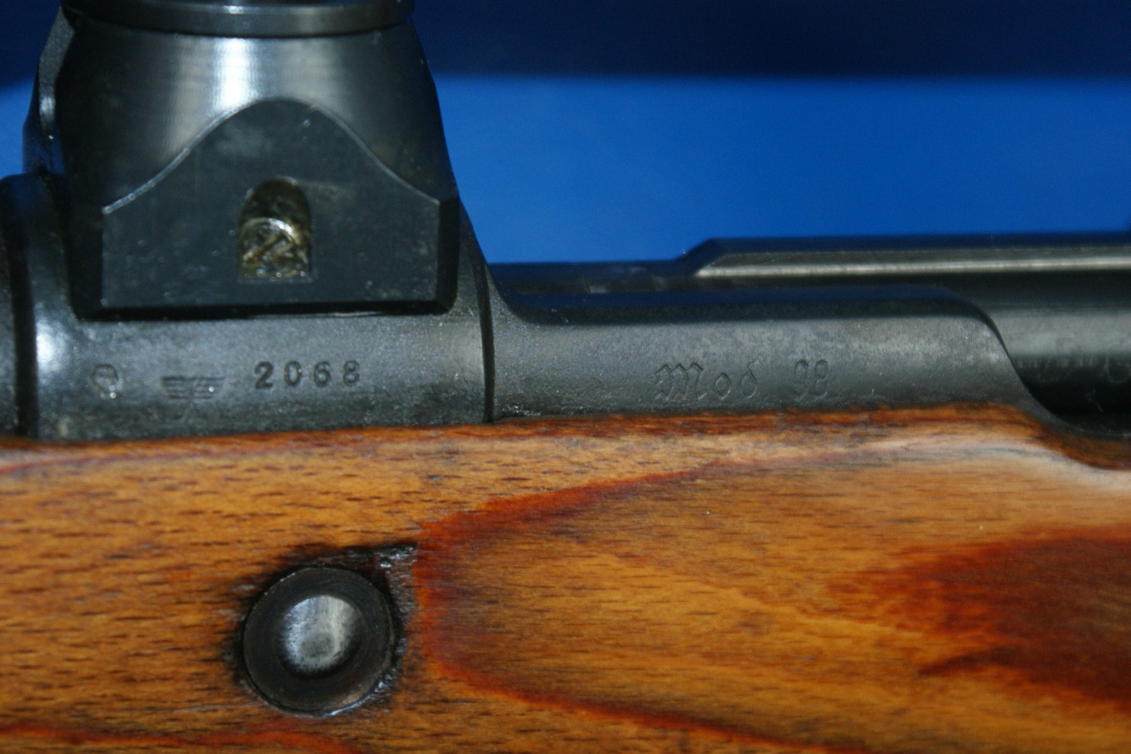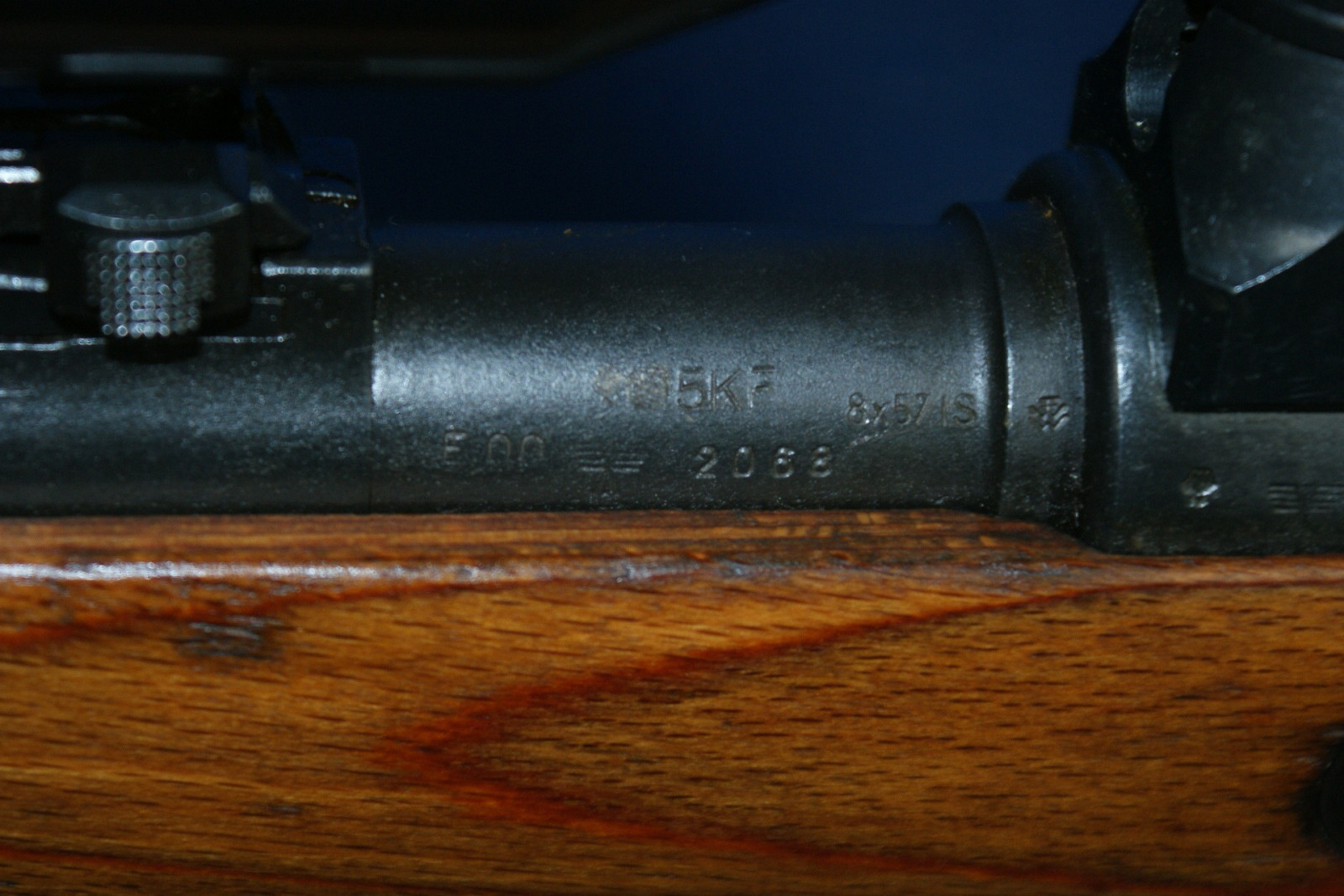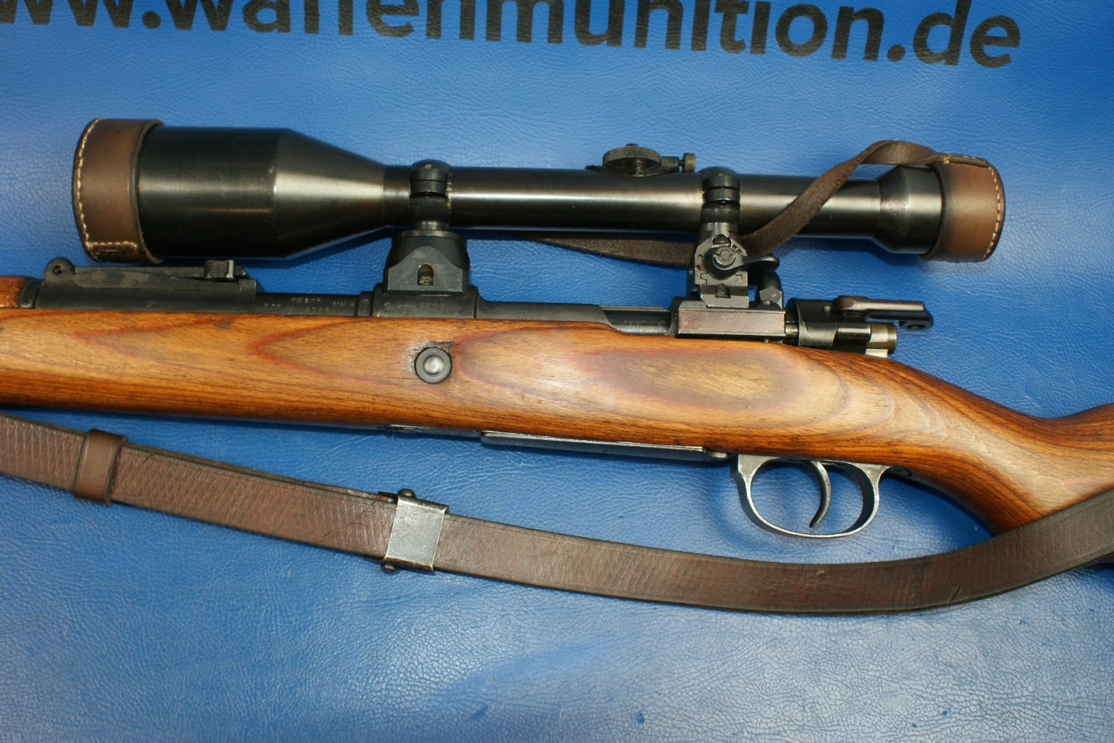Turmmontage, Lauf und Systemhülse nummerngleich, Rest soweit ersichtlich nicht nummerngleich; Gewehr wurde überarbeitet. Lager- und Gebrauchsspuren.