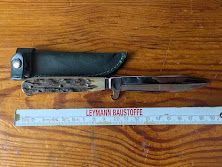Verkaufe aus Verlassenschaft ein tolles Messer. Gebrandet mit "Solingen rostfrei WISOLI". Die Maße sind auf dem Foto ersichtlich. Das Messer hat einen Kapselheber in die Parierstange eingearbeitet und Griffschalen im Hirschhornlook, kein echtes Hirschhorn.Dazu gibts eine Leder-Steckscheide. Das Messer sieht insgesamt unbenutzt aus, die Klinge ist nicht verschliffen und scharf, möglicherweise Originalschliff. Für die Einhaltung evtl. Sicherheitsbestimmungen im Land des Käufers ist der Käufer verantwortlich! Wie immer hier: keine Garantie, keine Gewährleistung, keine Rüchnahme. Das Porto bezieht sich auf Österreich, ins Ausland gehts nach dem Tarifrechneer der österr. Post, versicherter Versand natürlich.