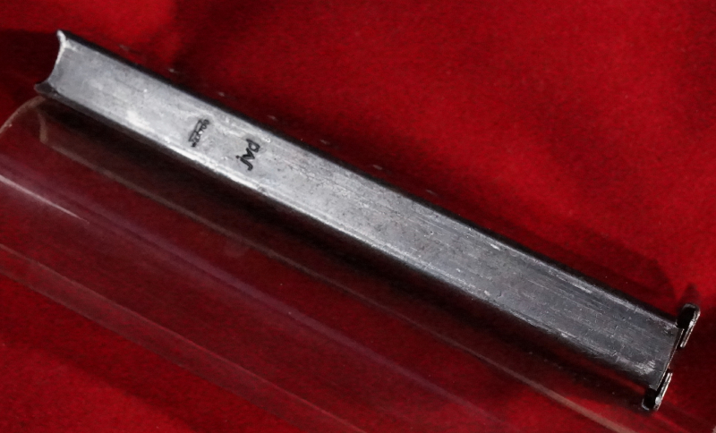Heute biete ich aus einem Nachlass ein original Magazin für die Pistole WALTHER Modell P38 der Deutschen Wehrmacht an, welches sich in einem sehr guten Zustand befindet. Es hat alle Stempel (Fotos).Auch der Bodenstempel ist vorhanden. Der Versand erfolgt mit DHL versichert. Auf Wunsch auch als Päckchen unversichert. Natürlich ist der Versand dann € 4,19. Porto ins Ausland teurer.
