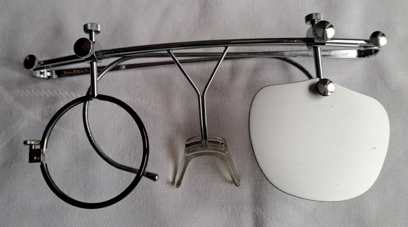 Knobloch Schießbrille, ältere Bauart, guter Zustand, einwandfreie Funktion, mit langem Nasensteg und großem Glashalter.