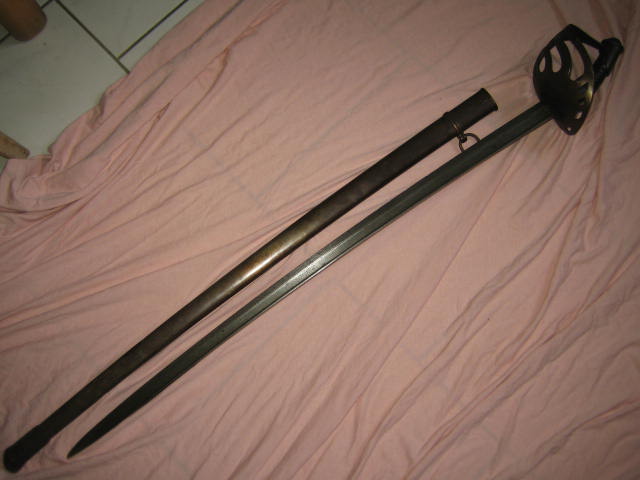 Gebrauchter ungereinigter zustand,Klingenlänge 83 cm, gesamtl. 105 cm, auf der Fehlschärfe französiche Herstellergravur fragen vor Auktionsende stellen.