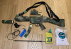 Tarnlackierung, Trageriemen montiert, Ladegerät, Visier, 1x Magazin, Nachlader + Kugeln.