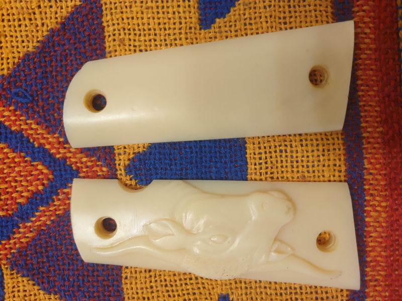 Verkaufe Griffschalen aus Plastik mit einem Longhorn Motiv auf einer Seite 1911er und baugleiche in Standard Größe, leicht gelbliche Färbung. Privatverkauf, keine Garantie oder Rücknahme.