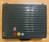 Rimowa Koffer für Lupi in dunkelgrünem Kunstoff mit 2 Zahlenschlössern, 45 cm breit und 35 cm hoch, Inhalt Stopuhr, Ohrstöbseö, Reinigungsstopfen, Pelletbox und Savetybox. Stabil und unbeschädigt. Aussparung für Pressluft/CO 2 Patrone und Pistole vorhanden.