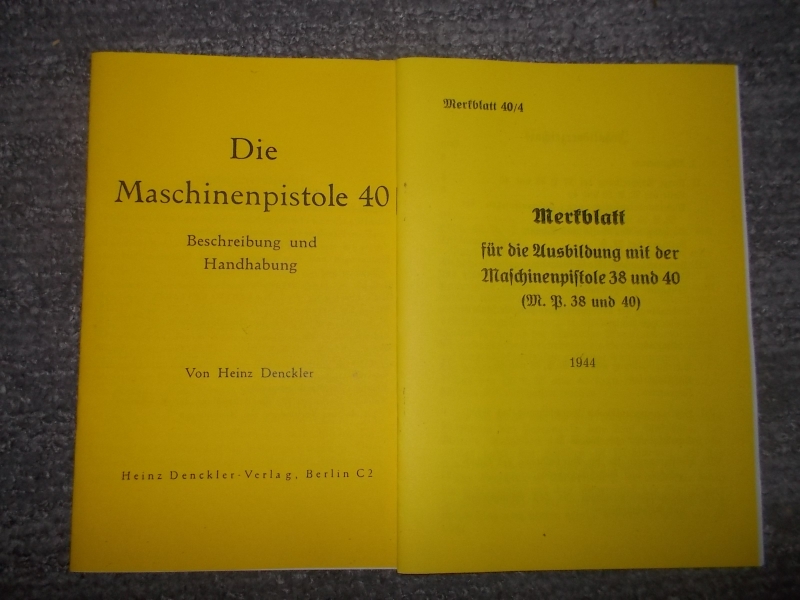 Verkaufe Beschreibung & Merkblatt der deutschen MP38 & MP40 in 2 Hefte DIN A5. Kein Orginal! Neufertigung. Reprint.