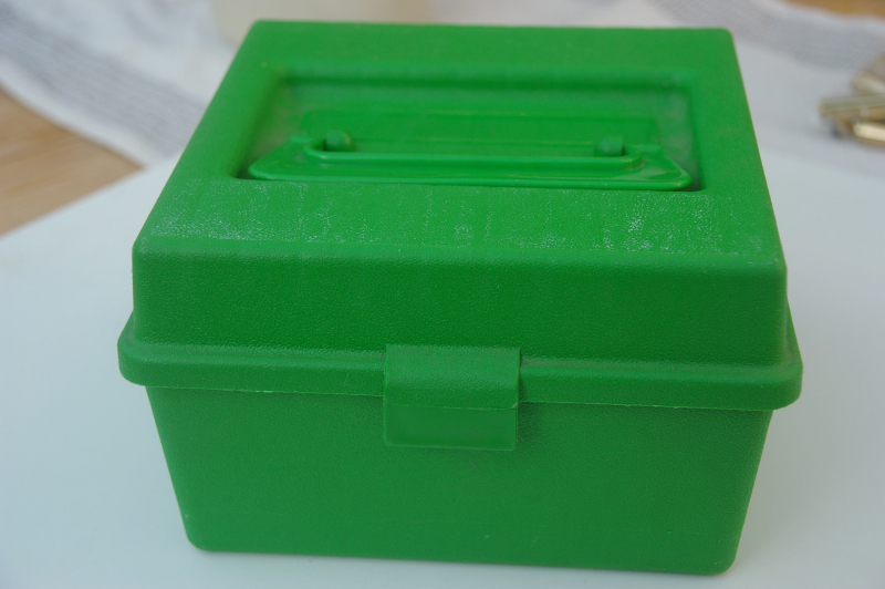 Es wird hier die abgebildete MTM Case R100 für 100 Patronen angeboten. Die Box ist für die Patronen 7x64, 7x57, 6,5x57,6,5x64, 6,5c65R, 30-06. 9,3x62 etc. ausgelegt.