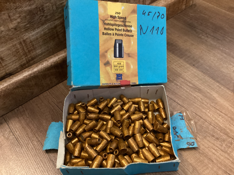 Verkauft werden Ca. 170 St. Geschosse H&N 45/70 High Speed verkupfert Hohlspitz .458 300gr.